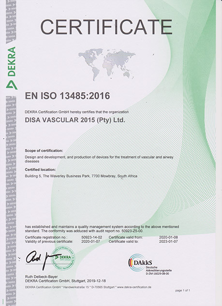 DISA subscribes to the highest standards.  All devices manufactured by DISA Medinotec are manufactured in an EN ISO 13485 and MDD93/42/EEC accredited environment. All devices have EC Certification.